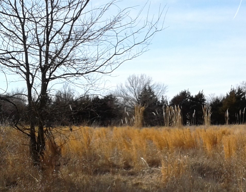 Walking the nature trails, I wander across a large meadow, at least ¼ mile long and just as wide. Everywhere I look across this open countryside, I see dead, dry, native grasses. Deciduous trees dot the landscape. Winter weather has shorn them of their green garments, and their barren branches stretch nakedly toward the wintry sky. A slight breeze blows, rustling the dried grasses. The scenery is dull and bare.