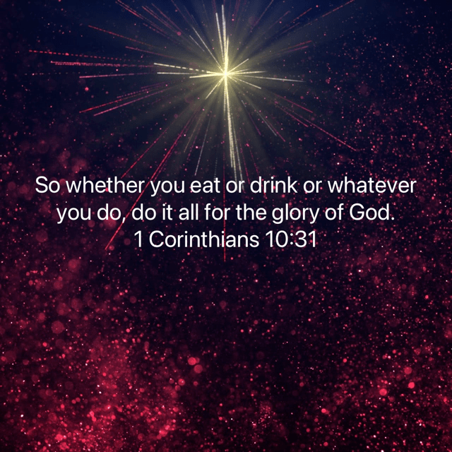 This verse makes me think. Do I eat and drink for the glory of God? What about ordinary, everyday activities like cooking dinner, doing laundry, or driving to the grocery store? How do I do these things to glorify God? I know when I used to iron clothes, I would spend that time in prayer. When I drove a special ed. bus, I’d pray and sing praise songs when the bus was empty. What about you? In what ways do you glorify God in the ordinary activities of life?
