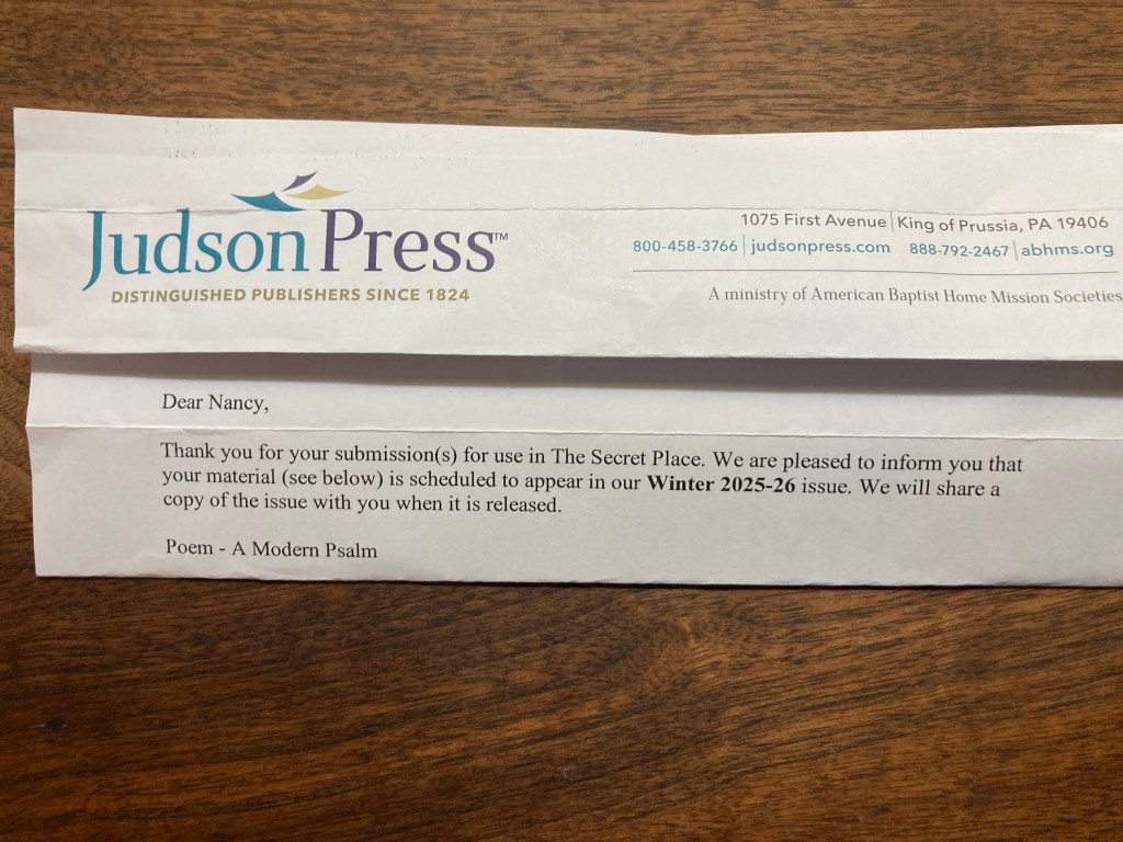 If you read The Secret Place, you’ll be able to read my poem in their winter edition. If not, I can post it in another year.