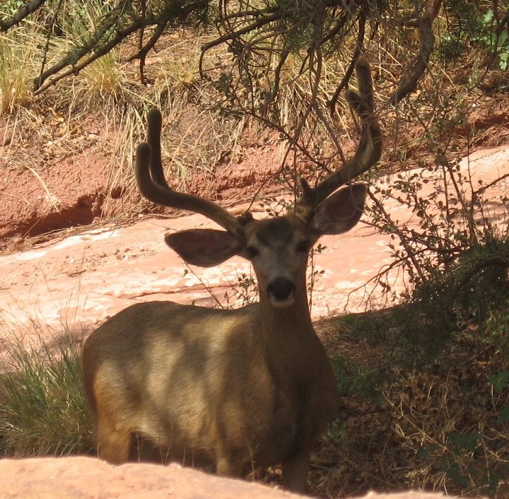 Walking along the trail, I just happened to look to my left. What I saw stopped me in my tracks. There, only ten to twelve feet away, stood four white-tailed deer, staring at me.