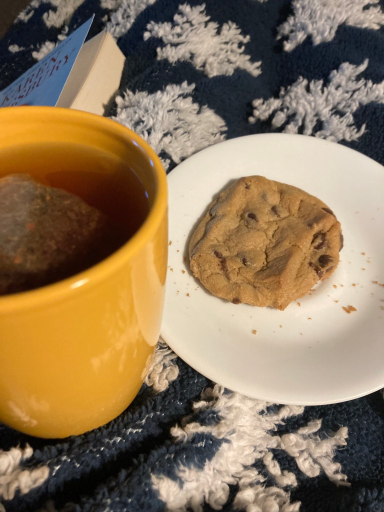 On this chilly afternoon, I am so thankful for a cup of hot tea (tangerine orange, yum!) some warm chocolate chip cookies, a soft, fuzzy blanket, and a good book to read.