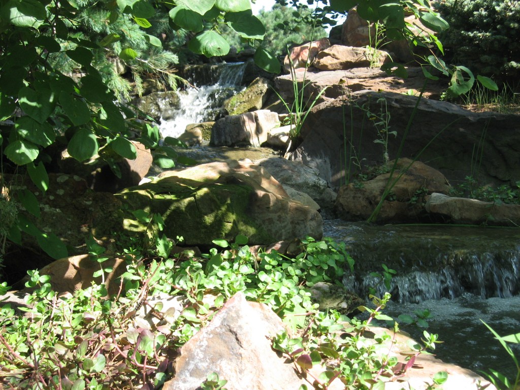At first glance, the stream appears motionless, its shallow green waters merely reflecting the overarching canopy of green. But here by the bridge, rocks litter the stream’s bed, and its water comes to life. Its meandering impeded, the stream ripples, bubbles, and rushes. The currents ripple and swirl around the rocks and fall over submerged stone, plunging to a lower level, leaving bubbling foam at the base of the mini-waterfall. I sit by the side of the stream listening to its gurgling, allowing the water’s chaos to soothe my soul.